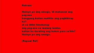 Find the best version for your choice. C-GB-F-G C GB F G Malayo pa ang umaga C GB F G Kahit sa dilim naghihintay pa rin C E Am F Umaasang bukas ay may liwanag C GB Am Dm7 Dm7C G Sa aking buhay umaga koy aking hinihintay. Hanggang kailan matitiis ang paghihirap ko.